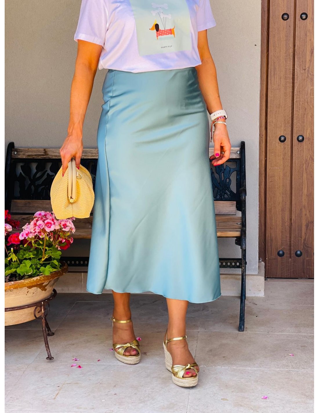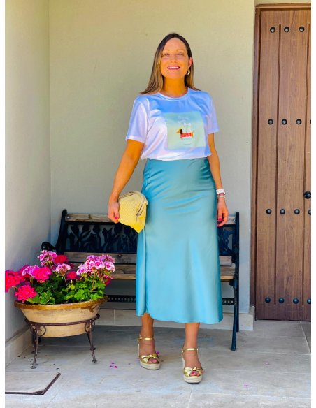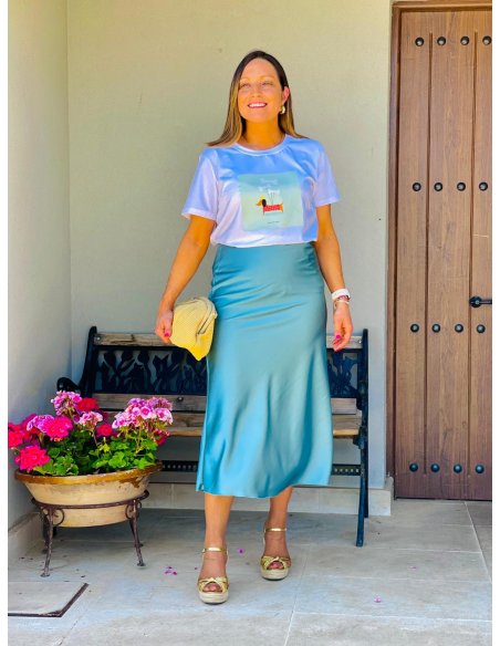 Falda Satinada Azul