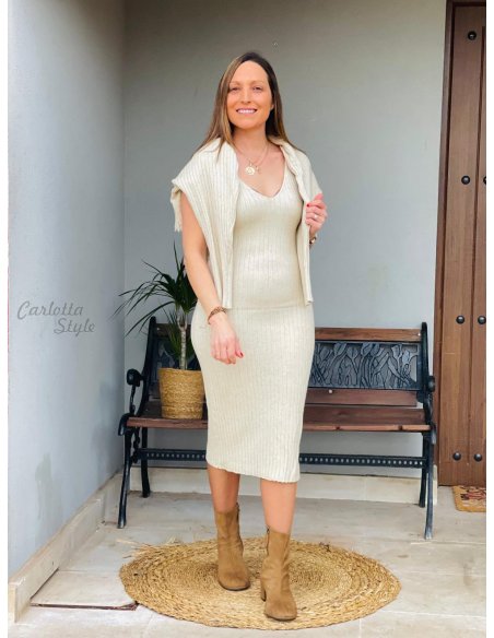 Vestido - Jersey Canalé Topo