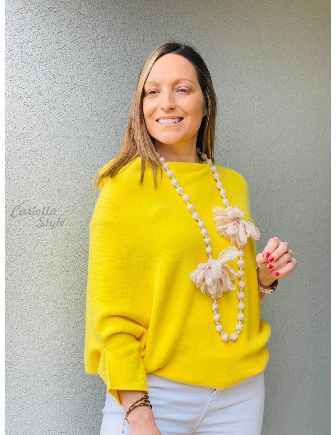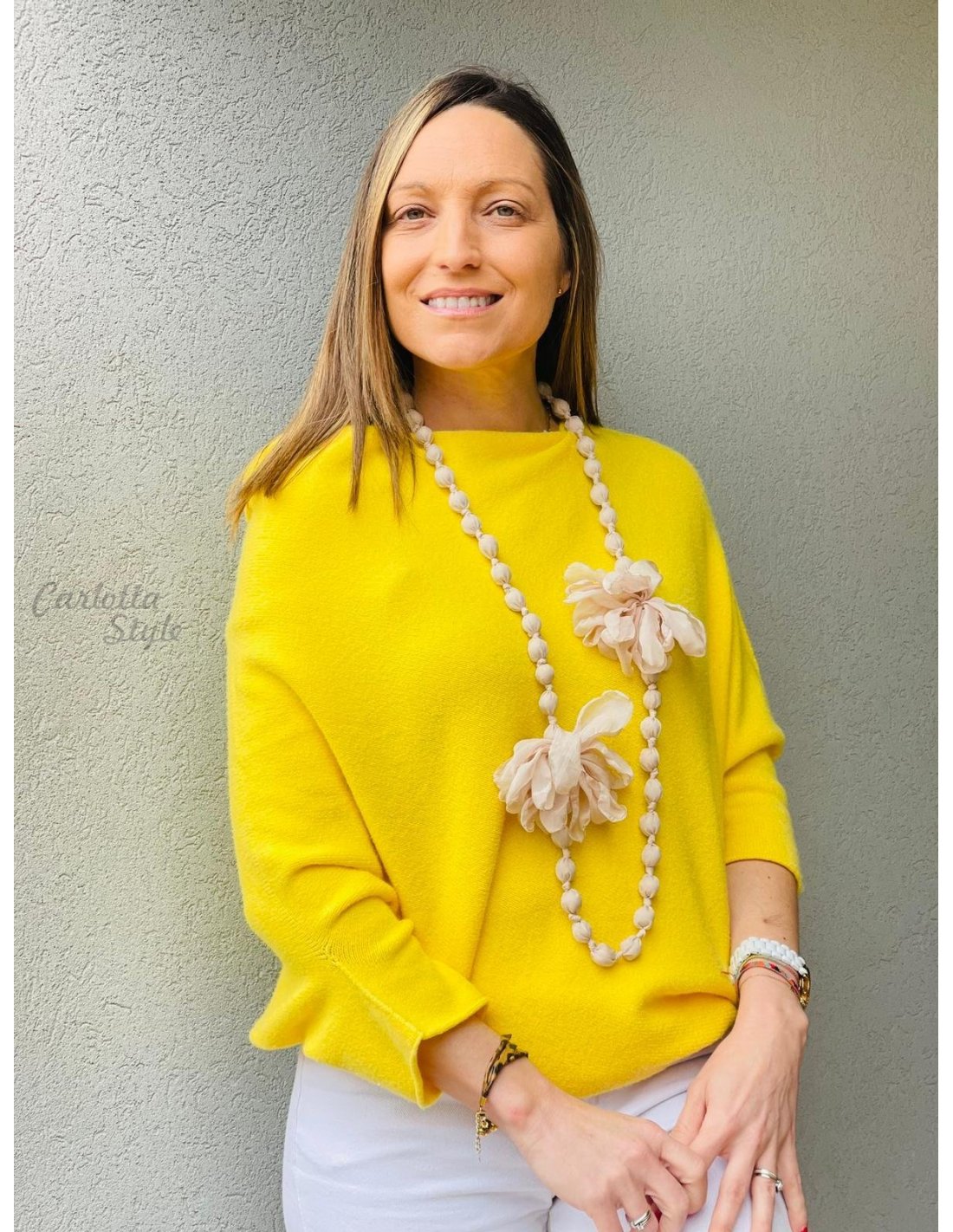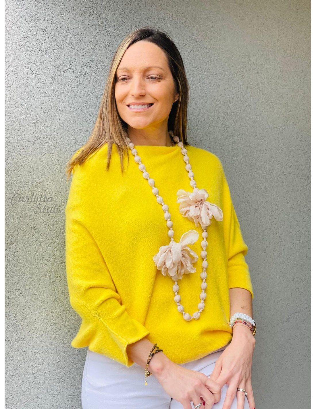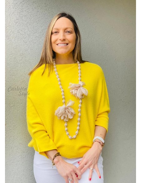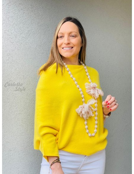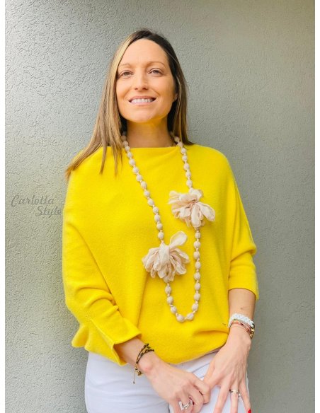 Collar Bolas Flores Beige